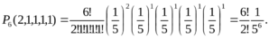Решение. На раскладку 6 рукописей в папку можно смотреть на серию шести полиномиальных испытаний с 5 исходами (попадание в i-ую папку – это i-ый исход). Вероятности исходов (папок) совпадают и равны
