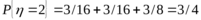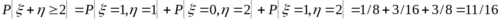. Таких клеток всего три, и соответствующие вероятности в этих клетках равны 1/8, 3/16, 3/8. Их сумма равна 11/16, это и есть искомая вероятность. Формально вычисление этой вероятности можно записать так: