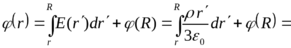 Определить потенциал (r) внутри равномерно заряженного по объему шара радиуса R. Объемная плотность заряда , диэлектрическую проницаемость считать равной = 1.