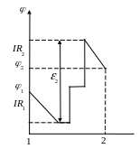Как видим, оказалось, что 1 < 2. К такому результату приводит присутствие ЭДС 2 между точками 1 и 2. В этом можно убедиться, построив ход потенциала между этими точками (см. рисунок).