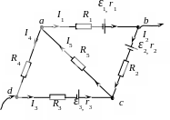 Для контура abcd при обходе по часовой стрелке можно записать второе правило Кирхгофа: