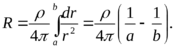 Выделяя в межэлектродном пространстве сферический слой радиуса r и толщиной dr, можно записать выражение для величины сопротивления этого слоя