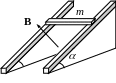 о двум контактным шинам, установленным под углом = 30 к горизонту может скользить медный брусок массы т = 0,5 кг (см. рис.). В окружающем шины пространстве создано однородное магнитное поле с индукцией В = 1,5 Тл, перпендикулярное к плоскости шин. Если по бруску пропускать ток с силой I = 8 А, то он перемещается вверх с постоянной скоростью. С каким ускорением брусок соскальзывает вниз в отсутствии тока? Расстояние между шинами равно l = 20 см. Учесть трение. -