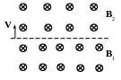 * Граница двух магнитных полей с индукциями В1 и В2 – плоскость. Электрон влетает перпендикулярно границе со с