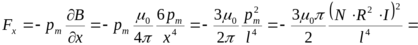 В неоднородном поле виток испытывает, кроме того, втягивающее или выталкивающее воздействие со стороны магнитного поля, в зависимости от первоначальной ориентации векторов рm и В. Сила этого взаимодействия может быть получена, исходя из общей взаимосвязи силы и потенциальной энергии: