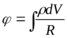 , и переходя к интегрированию, получим формулу для потенциала поверхностных зарядов. Аналогично выводится и формула для потенциала объёмных зарядов (в этом случае роль элементарных зарядов играют заряды