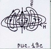 . Этого можно достичь, уменьшая площадь пластин конденсатора, увеличивая расстояние между пластинами и уменьшая число витков катушки, т.е. в пределе превращая контур в прямой проводник, с распределёнными вдоль него малыми индуктивностью и ёмкостью. Ясно, что уравнения, описывающие электромагнитные процессы в колебательном контуре (построенные на базе использования правил Кирхгофа) здесь уже не применимы, поскольку нарушается условие квазистационарности. Однако качественно работу такого проводника как генератора электромагнитных колебаний описать можно (такой проводник носит название линейного вибратора или вибратора Герца). Процесс перевода контура в вибратор показан на рис.18.