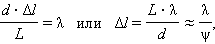 При смещении вдоль координатной оси y на расстояние, равное ширине интерференционной полосы Δl, т. е. при смещении из одного интерференционного максимума в соседний, разность хода Δ изменяется на одну длину волны λ. Следовательно,