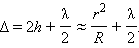 В эксперименте Ньютона (рис. 3.7.1) при нормальном падении волны на плоскую поверхность линзы разность хода приблизительно равна удвоенной толщине 2h воздушного промежутка между линзой и плоскостью. Для случая, когда радиус кривизны R линзы велик по сравнению с h, можно приближенно получить: