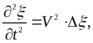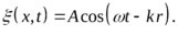 – классическое дифференциальное волновое уравнение для одномерного случая, где v – коэффициент, имеющий размерность скорости. Пусть V – скорость распространения волны (то есть скорость распространения возмущений); тогда, считая колебания в начале координат гармоническими без начальной фазы: