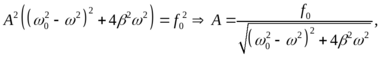 где f0 = = F0/m. Решение данного дифференциального уравнения будет состоять из решения однородного уравнения, соответствующего свободным затухающим колебаниям, и частого решения, которое может быть найдено в виде