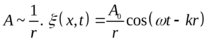 В сферической волне (всякую волну можно считать сферической, если расстояние до источника много больше его размеров) энергия колеблющейся частицы обратно пропорциональная площади соответствующей ей волновой поверхности, то есть