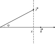 – волновой вектор (вектор, перпендикулярный к фронту волны и направленный в сторону её распространения);