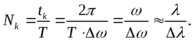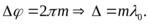 Если источник испускает непрерывный спектр волн, частоты которых изменяются от до , то полное изменение интерференционной картины произойдёт при разности фаз между соседними волнами в 2 (для каждой волны с частотой от до ( + /2) найдётся волна с частотой от ( + /2) до ( + ), имеющая с ней сдвиг фаз ; в конечном счёте все волны «нейтрализуют» друг друга). Таким образом, для этого случая