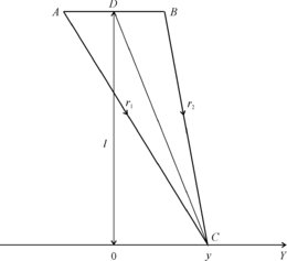 ассмотрим интерференционную картину от двух точечных источников, наблюдаемую на удалённом плоском экране. Источники находятся в точках А и В; АВ = d. По теореме Пифагора
