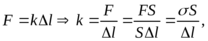 Рассмотрим упругий стержень с сечением S и плотностью . При его растяжении на l возникает сила упругости