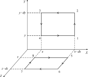 (считаем dx малым, поэтому значение B в пределах площадки можно считать постоянным). Аналогично, выбираем в плоскости XZ контур 5–6–7–8: