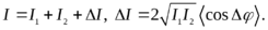 (даже в этом случае среднее значение cos за малый промежуток времени отлично от нуля, но такого времени недостаточно для фиксации интерференционной картины оптическим прибором). Если колебания когерентны, то результирующая интенсивность может оказать больше или меньше суммы интенсивностей налагающихся волн – происходит перераспределение энергии в пространстве; в этом случае наложение волн называют интерференцией.