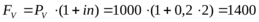 сложный процент (с учетом капитализации). Проценты сначала начисляются на 1000, потом на 1200, получим уже более 1400 (1440) за 2 года.