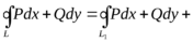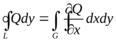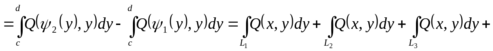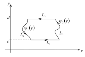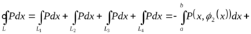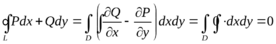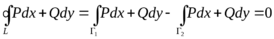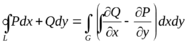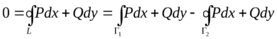 Следствие 2. Если область G можно разбить кривыми на конечное число областей, удовлетворяющих условиям следствия 1 и L - граница G, причем направление обхода выбрано так, что область G остается слева, и P и Q удовлетворяют перечисленным выше условиям, то
