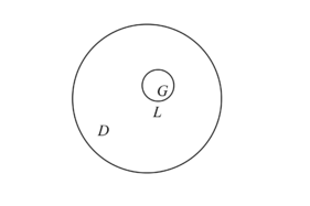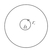 | Пример односвязной области: круг | Пример неодносвязной области: круг с выколотой точкой. |