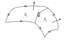 | Например, в случае двух частей ориентация будет согласованной, если положительное направление движения по общей границе происходит от |
