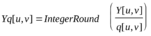 Производим квантование. В принципе это просто деление рабочей матрицы на матрицу квантования поэлементно. Для каждой компоненты (Y, U и V), в общем случае, задается своя матрица квантования q[u,v] (далее МК).