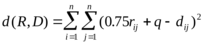 где rij — значения пикселов рангового блока (R), а dij — значения пикселов доменного блока (D). При этом мера считается как: