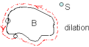 Def: Расширение (Dilation) двоичного изображения B на структурный элемент S записывается в виде