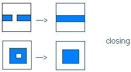 Операция закрытия «закрывает» небольшие внутренние «дырки» в изображении, и убирает углубления (bays) по краям области.