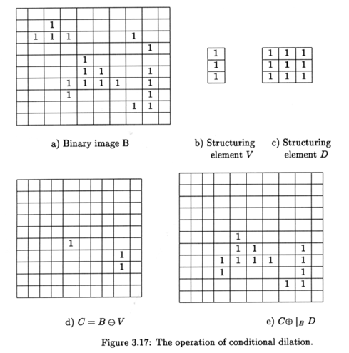 Условное расширение применяется тогда, когда после сужения изображения необходимо его расширить только теми пикселями, которые входили в первоначальное изображение.