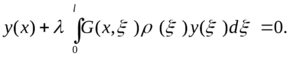 Интегральное уравнение (26.2) является интегральным уравнением Фредгольма второго рода с симметричным ядром. Интегральное уравнение (26.2) эквивалентно задаче на собственные значения (26.1), т.е.