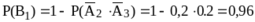 Р(А) = 1 – Р(А-) = 1 – Р(А1-*А2-) = 1 – 0,3 * 0,2 = 0,94