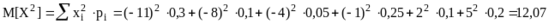 Дисперсия D x - число, характеризующее разброс возможных значений случайной величины вокруг среднего значения, равного m x . Подсчитываем ее по вспомогательной формуле :