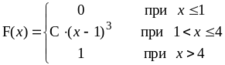 В точке x=4 : F(4-0)= С(4-1)3 =27С; F(4+0)= 1; F(4)= 27С; функция непрерывна, если 27С =1, откуда получаем С=1/27.