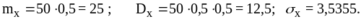 Посчитываем математическое ожидание и дисперсию случайной величины X - числа выпадений герба при 50 бросаниях монеты :