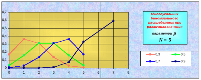 Например: монета бросается 10 раз. N=10. В каждом из бросании соб А – появление герба может появиться с р=1/2 и не появиться с q=1/2.