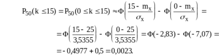 Какова вероятность того, что при 50 бросаниях монеты герб появится не более 15 раз.