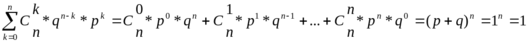 На интервале p+q=1 может быть одно целое число или два целых числа, если они попадают на края интервала. В этом случае их вероятности будут равны.
