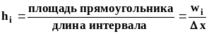 на каждом элементарном интервале строим прямоугольник, по площади равный относительной частоте попадания в интервал.