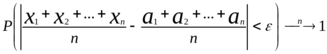 при n вероятность того, что отклонение будет меньше ε, будет стремиться к 1.