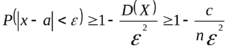 Неравенство (3) определяет нижнюю границу вероятности попадания случайной величины на [a – ε; a+ ε].