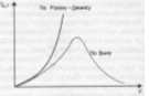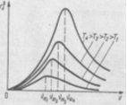 | 37. Законы теплового излучения абсолютно черного тела (Закон Стефана Больцмана). Тело наз-ся черным (абсолютно черным), если оно при любой температуре полностью поглощает всю энергию падающих на него электромагнитных волн независимо от их частоты, поляризации (упорядочивания светового в-ра) и направления распространения. Следовательно, коэф-т поглощения абсолютно черного тела (АЧТ) тождественно равен единице. Спектральная плотность энергетической светимости АТЧ зависит только от частоты излучения и термодинамической температуры Т тела. Закон Кирхгофа: Отношение спектральной плотности энергетической светимости к спектральной поглощательной способности н.з. от природы тела; оно является для всех тел универсальной ф-цией частоты. (длины волны) и температуры: . Для черного тела =1, поэтому из закона К. вытекает, что для черного тела равна . Таким образом, универсальная функция Кирхгофа есть не что иное, как спектральная плотность энергетической светимости черного тела. Энергетическая светимость АТЧ зависит только от температуры, т.е. Энергетическая светимость АТЧ пропорциональна четвертой степени его термодинамической температуры: , где -- постоянная Больцмана. Этот закон – закон Стефана-Больцмана. Задача отыскания вида функции Кирхгофа (выяснения спектрального состава излучения ЧТ): Эксперименты показали, что зависимость при разных температурах ЧТ имеет вид см. рис.. При разный частотах , а в области больших частот (правые ветви кривых вдали от максимумов), зависимость от частоты имеет вид , где -- постоянная величина. Сущ-вание на каждой кривой более или менее ярко выраженного максимума свидетельствует о том, что энергия излучения ЧТ распределена по спектру неравномерно: черное тело почти не излучает энергии в области очень малых и очень больших частот. По мере повышения температуры тела максимум смещается в область больших частот. Площадь, ограниченная кривой и осью абсцисс, пропорциональна энергетической светимости ЧТ. Поэтому в соответствии с законом Стефана Больцмана она возрастает пропорционально . |