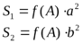Острый угол напротив стороны a обозначим A. Из соображений размерности площадь треугольника S пропорциональна квадрату одной из сторон, скажем, гипотенузы: