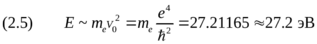 Это скорость электрона на первой боровской орбите. Умножив числитель и знаменатель на скорость света c, перепишем выражение для V0 в виде