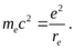 В правой части последнего уравнения стоит кулоновская энергия взаимодействия зарядов e, находящихся на расстоянии re, а в левой части — энергия покоящегося электрона. Таким образом, re представляет собой такой размер шарика с зарядом e, при котором энергия взаимодействия электрона с возбуждаемым им полем равна его энергии покоя mec2.