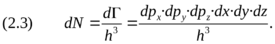 можно рассматривать как элемент объёма в 6–мерном фазовом пространстве. Каждая пара произведений импульса и координаты pi·ri имеет размерность действия. Соответственно, число квантовых состояний dN в элементе фазового объёма
