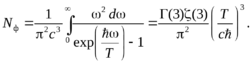 Чтобы определить величину , необходимо сформулировать модель, в которой поток от чёрного тела отличен от нуля. Такая модель будет изложена в следующих разделах, а сейчас вычислим полное число квантов Nф в единичном объёме чёрного тела. Для этого проинтегрируем по всем частотам формулу (4.8) второй главы: