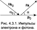 Значения всех величин до столкновения пометим индексом «0». Направление импульсов фотона до столкновения k0 и после рассеяния k измеряем относительно импульса p0 невозмущённого электрона. Угол между k0 и p0 на рис. 4.3.1 обозначим 0,