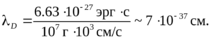 где D — длина волны частицы. Величина D была введена Луи де Бройлем в 1924 г. На первый взгляд, предположение о существовании волновых свойств частиц кажется несуразным: ведь у обычных тел они никогда не наблюдались. Но всё дело в том, что постоянная Планка очень мала, а масса макроскопических тел — велика. Поэтому в макромире величина D значительно меньше размеров любых реальных объектов.